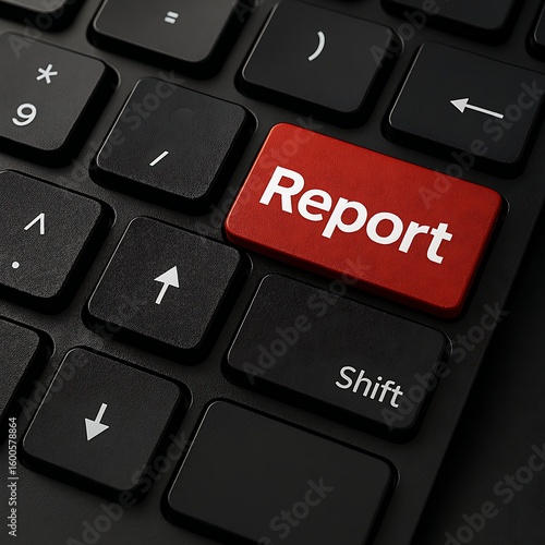 The watermark will not be included on Wall mural.: Close-up of red report button on modern black keyboard