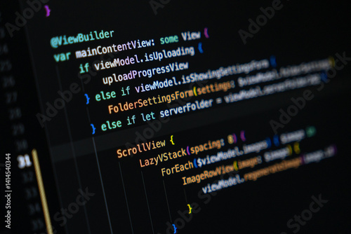 Wall mural close-up of swift programming code on a computer screen showing mobile app interface structure - Wall murals Wall mural close-up of swift programming code on a computer screen showing mobile app interface structure - Wall murals