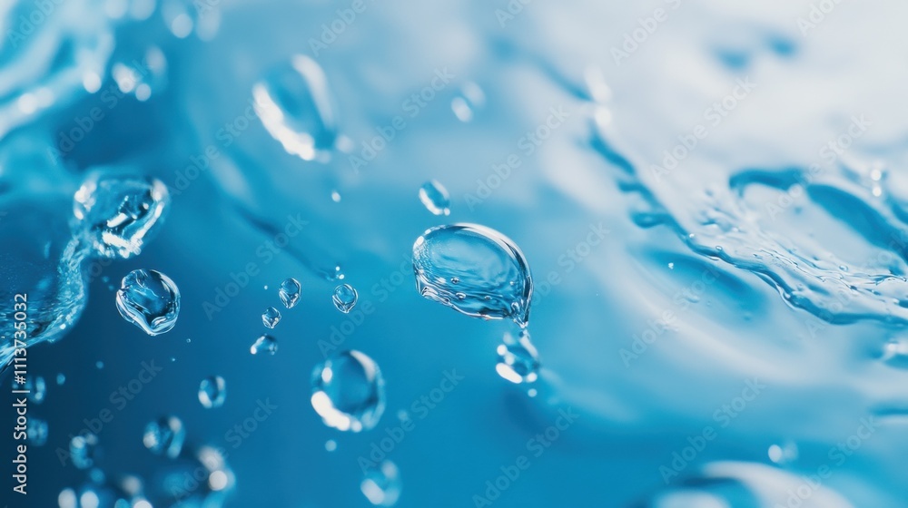 The watermark will not be included on Wall mural.: Close-up of vibrant blue water with bubbles, creating a refreshing and dynamic atmosphere -
