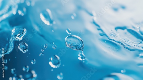 Wall mural : Close-up of vibrant blue water with bubbles, creating a refreshing and dynamic atmosphere -