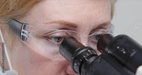 The watermark will not be included on Wall mural.: Close-up of woman scientist using microscope in a laboratory -
