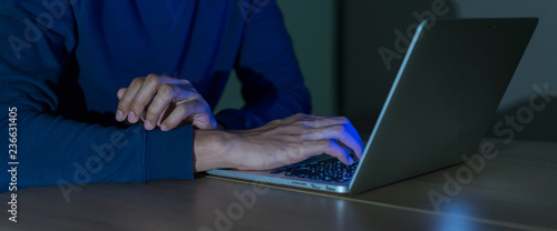 Wall mural close up on man hand typing or working on laptop for programming about cyber security , advance futu - Wall murals Wall mural close up on man hand typing or working on laptop for programming about cyber security , advance futu - Wall murals