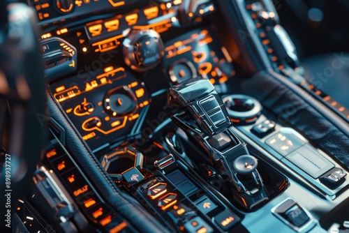 The watermark will not be included on Wall mural.: Close-up shot of a car's dashboard with various buttons and controls