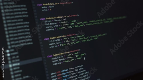 The watermark will not be included on Wall mural.: Close-up shot of a display with a programming code being written during pandemic covid-19 coronaviru
