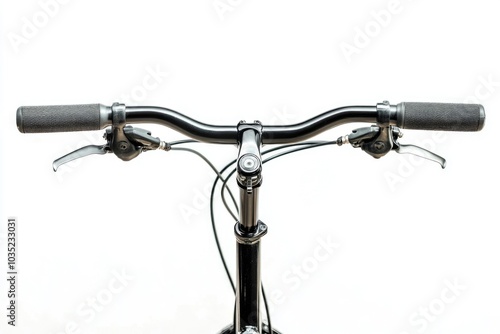The watermark will not be included on Wall mural.: Close-up shot of bicycle handle bars with details on grips and controls