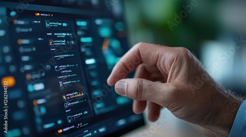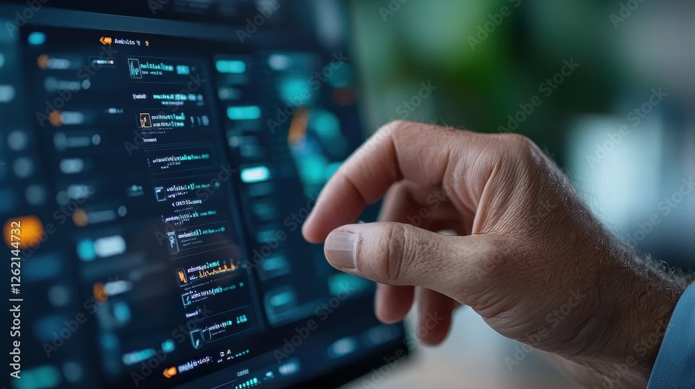 Wall mural close up view of a hand interacting with an innovative finance technology interface featuring a digi - Wall murals Wall mural close up view of a hand interacting with an innovative finance technology interface featuring a digi - Wall murals