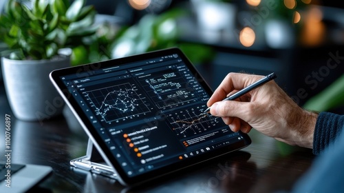Wall mural close up view of a person s hand using a digital tablet to analyze financial data and market trends  - Wall murals Wall mural close up view of a person s hand using a digital tablet to analyze financial data and market trends - Wall murals