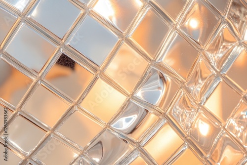 The watermark will not be included on Wall mural.: Close-up view of disco ball surface showing intricate mirror tiles and captivating reflections in mi