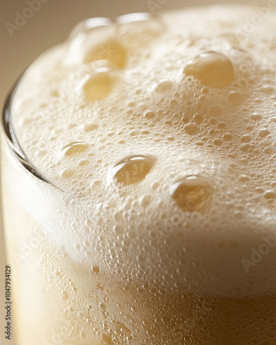 Wall mural close up view of glass filled with creamy soda, showcasing frothy foam and bubbles on top, creating  - Wall murals Wall mural close up view of glass filled with creamy soda, showcasing frothy foam and bubbles on top, creating - Wall murals