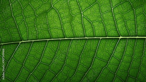 The watermark will not be included on Wall mural.: Close-up view of intricate green leaf veins creating a textured pattern