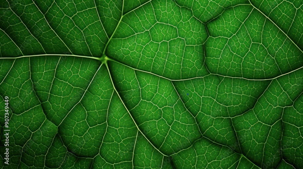 The watermark will not be included on Wall mural.: Close-up view of intricate green leaf veins creating a textured pattern
