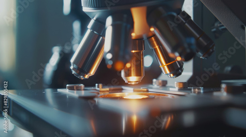 The watermark will not be included on Wall mural.: Close-up view of laboratory microscope with scientific instruments
