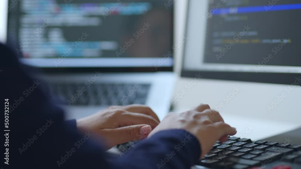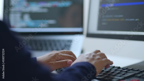 Wall mural : Closeup hand of developer programmer, soffware engineer, it support, typing on computer keyboard