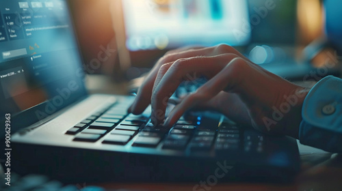 The watermark will not be included on Wall mural.: Closeup hand using computer enhancing deep learning ai