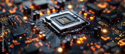 The watermark will not be included on Wall mural.: Closeup of a computer motherboard with glowing components