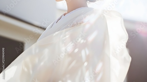 The watermark will not be included on Wall mural.: Closeup of a delicate wispy white feather with a soft plush and shimmering texture creating a serene