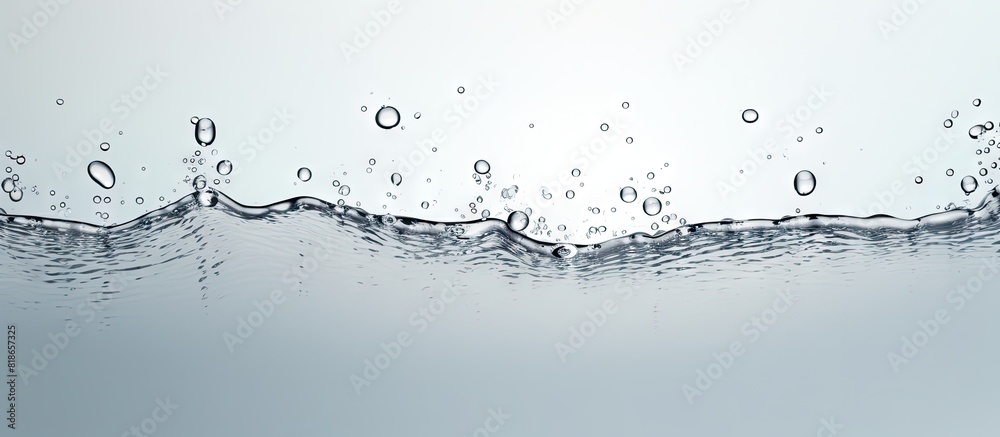 Wall mural closeup of a light grey background with a splash of clear water and drops perfect for adding text. w