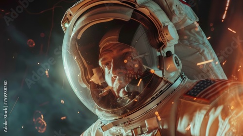 The watermark will not be included on Wall mural.: Closeup of an astronaut orbiting through space generative ai