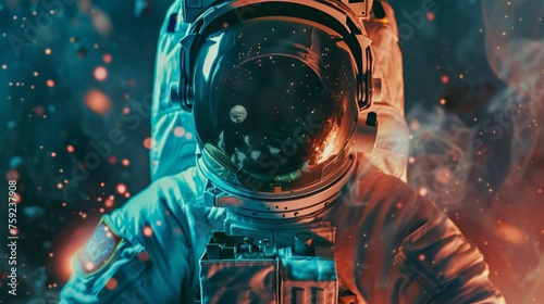 The watermark will not be included on Wall mural.: Closeup of an astronaut orbiting through space generative ai