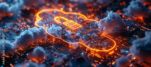 Wall mural : Closeup of cloud cybersecurity measures holographic encryption keys and secure data nodes using macr