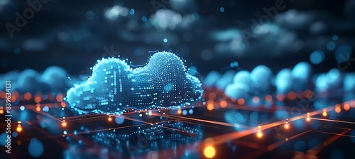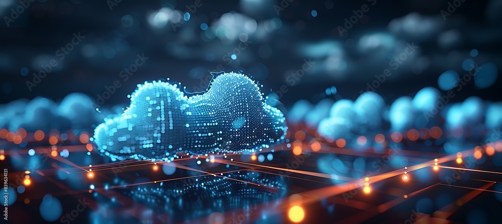 Wall mural : Closeup of cloud network connections holographic data displays and virtual pathways using macro phot