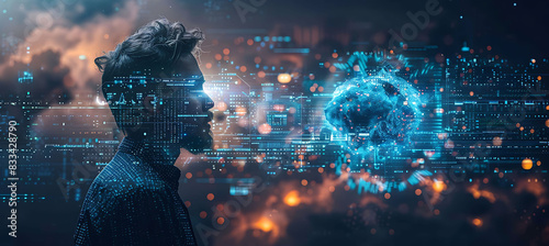 Wall mural : Closeup of cloud services interfaces within the cloud showing detailed data streams and holographic