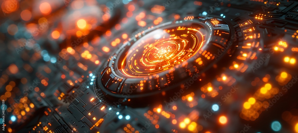 Wall mural closeup of remote access interfaces holographic displays and virtual connections using macro photogr - Wall murals Wall mural closeup of remote access interfaces holographic displays and virtual connections using macro photogr - Wall murals
