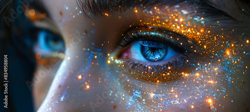 Wall mural : Closeup of remote access interfaces within the cloud showing detailed data streams and holographic c