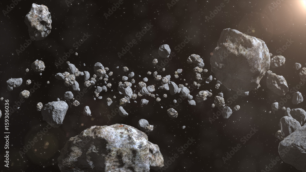 The watermark will not be included on Wall mural.: Closeup on meteor lumps in space - dark background - suitable for any fantasy, astronomy or space real