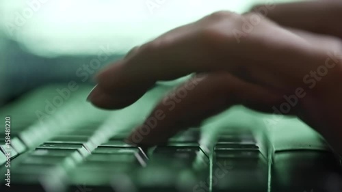Wall mural closeup shot of hands of female hacker typing on computer keyboard - Wall murals Wall mural closeup shot of hands of female hacker typing on computer keyboard - Wall murals