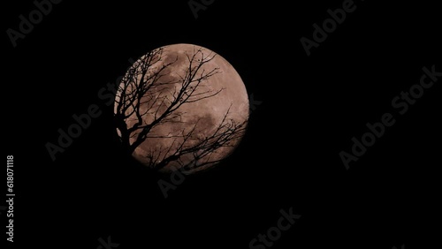 Wall mural : Closeup video of trees in a shadow with a full moon in the background