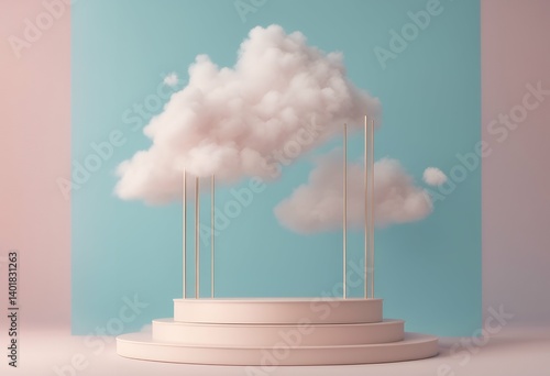 Wall mural cloud background podium pastel 3d rendering colors design party dark three-dimensional display blue  - Wall murals Wall mural cloud background podium pastel 3d rendering colors design party dark three-dimensional display blue - Wall murals