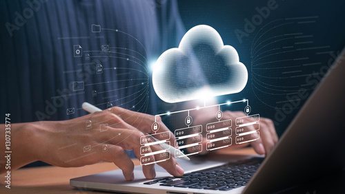 Wall mural cloud based file storage and data security concept. it professional manages digital files, ensuring  - Wall murals Wall mural cloud based file storage and data security concept. it professional manages digital files, ensuring - Wall murals