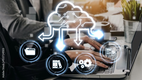 Wall mural : Cloud computing, cloud strategy, and cloud technology transforming digital infrastructure with scala