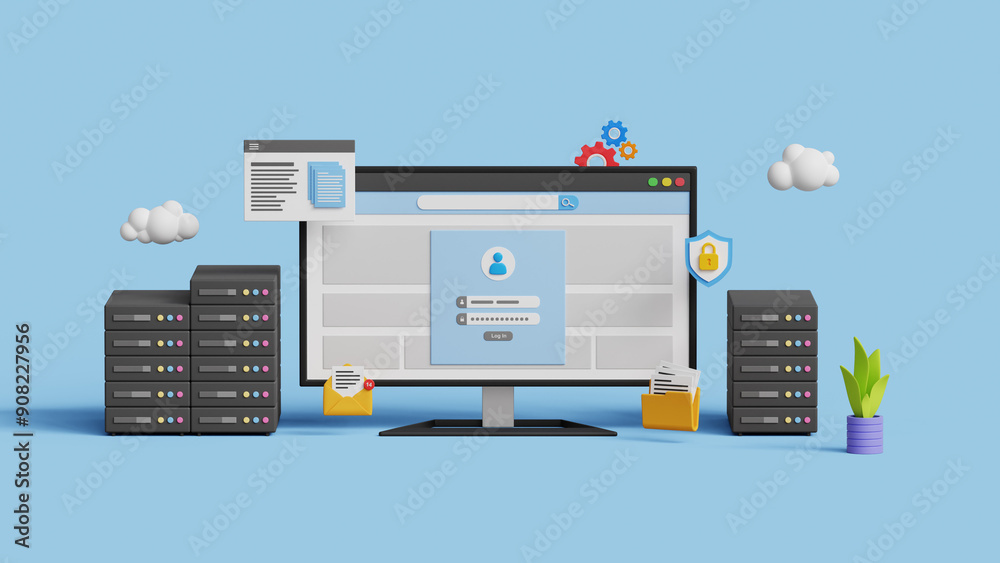 The watermark will not be included on Wall mural.: Cloud computing, cloud technology concept - data server, remote database, data centre, remote data st