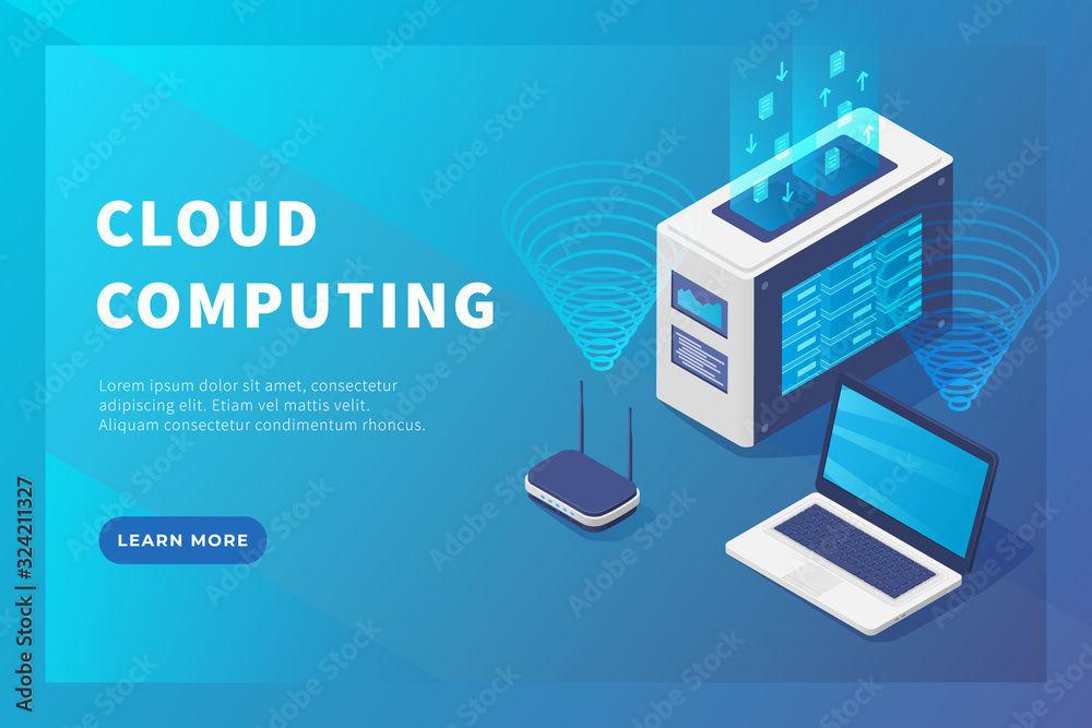 Wall mural cloud computing concept server database with laptop and database for website template or landing hom - Wall murals Wall mural cloud computing concept server database with laptop and database for website template or landing hom - Wall murals
