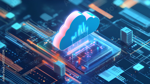 Wall mural : Cloud computing cost efficiency, cost efficiency in cloud computing with an image showing pay-per-us