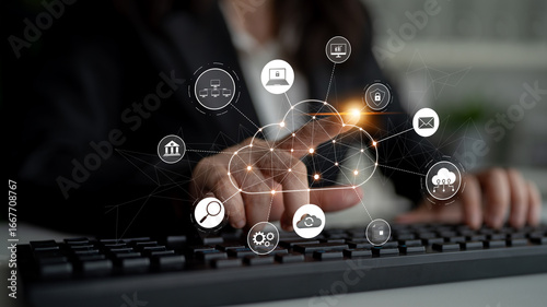 Wall mural cloud computing enables cloud, service, and network integration for digital transformation, data acc - Wall murals Wall mural cloud computing enables cloud, service, and network integration for digital transformation, data acc - Wall murals