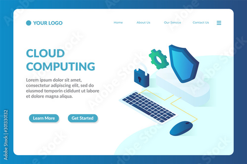 The watermark will not be included on Wall mural.: Cloud computing isometric website landing page template