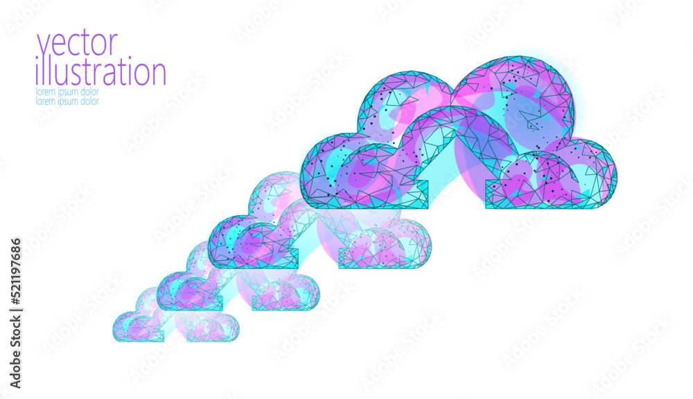 Wall mural cloud computing online storage low poly. polygonal future modern internet business technology. blue