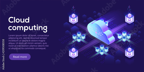 Wall mural : Cloud computing or storage isometric vector illustration - 3d hosting servers or datacenter backgroun