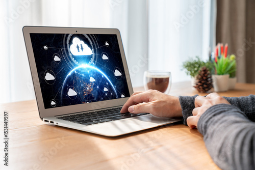 Wall mural : Cloud computing software for modish remote work and personal data storage
