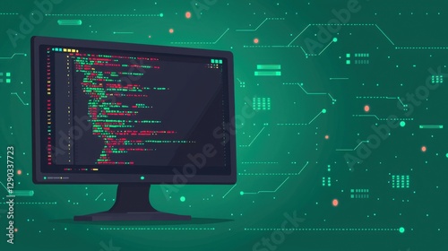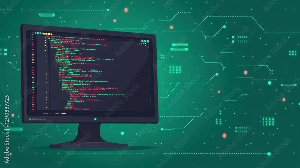 Cloud computing software latency - coding interface on a monitor with abstract digital background - Wall mural