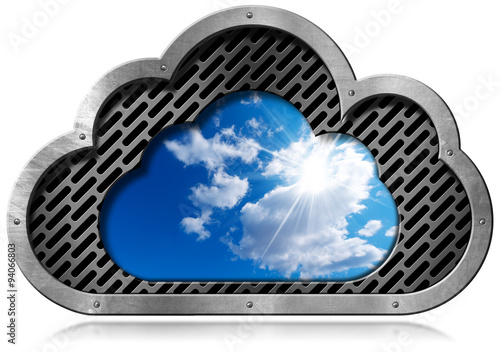 Wall mural cloud computing symbol with sky / metallic symbol in the shape of a cloud with a blue sky and clouds - Wall murals Wall mural cloud computing symbol with sky / metallic symbol in the shape of a cloud with a blue sky and clouds - Wall murals
