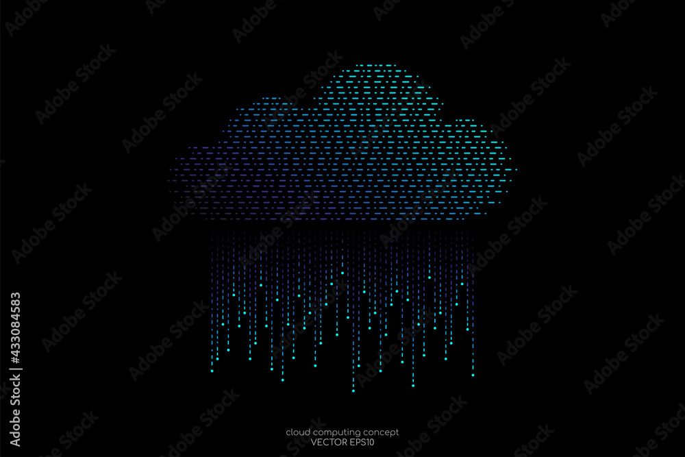 Wall mural : Cloud computing technology concept by binary dots blue green light lines pattern cloud shape and rai