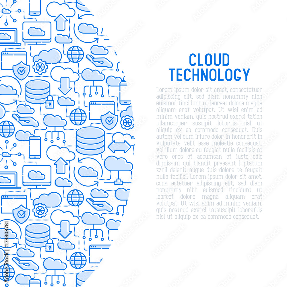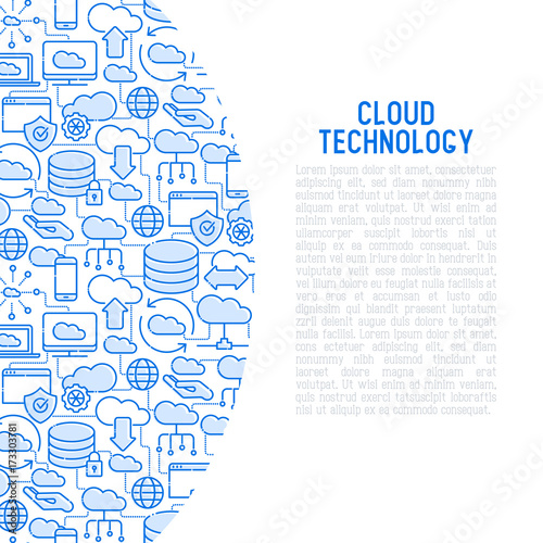 Wall mural cloud computing technology concept with thin line icons related to hosting, server storage, cloud ma - Wall murals Wall mural cloud computing technology concept with thin line icons related to hosting, server storage, cloud ma - Wall murals