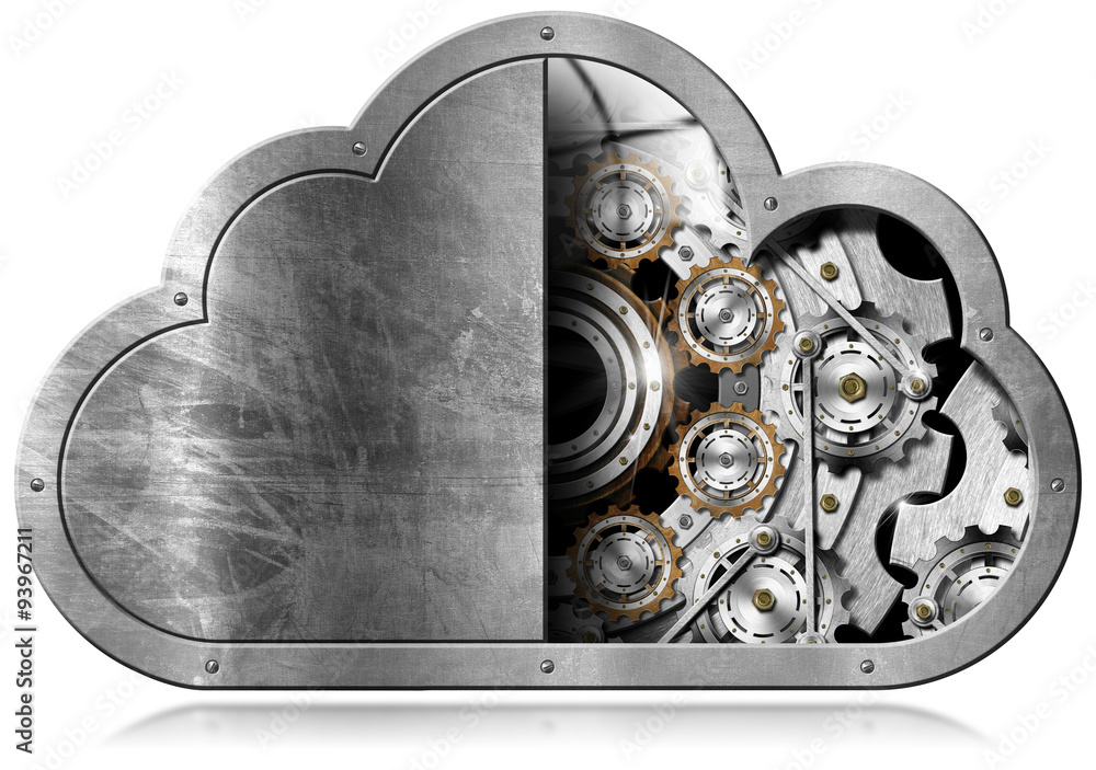 Wall mural cloud computing with metal gears / metallic symbol in the shape of a cloud with metal gears. concept