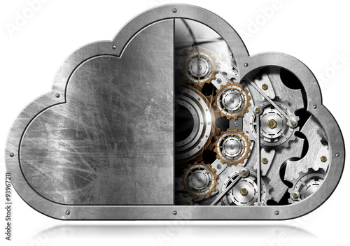 Wall mural : Cloud computing with metal gears / metallic symbol in the shape of a cloud with metal gears - concept