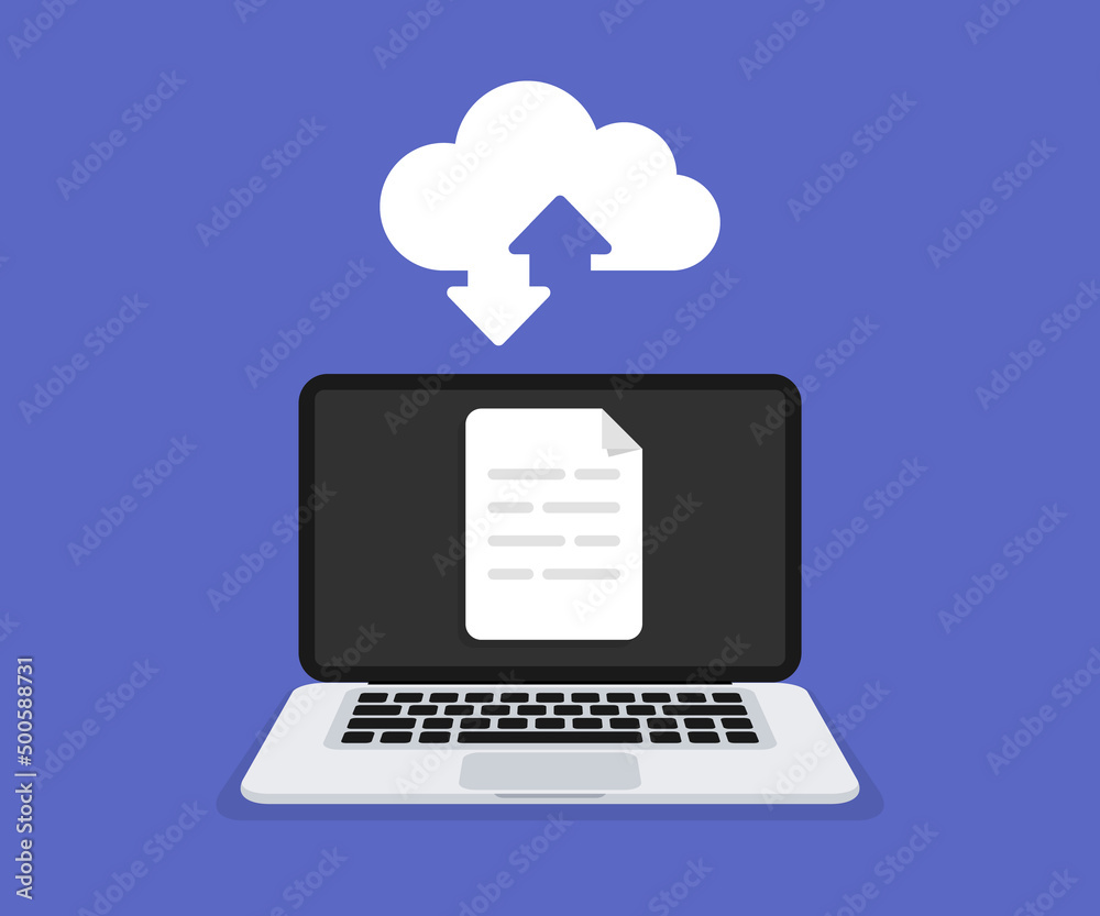 Wall mural : Cloud computing - uploading process on computer screen - cloud data storage and processing - backup con
