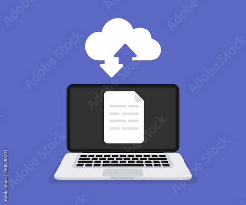 The watermark will not be included on Wall mural.: Cloud computing - uploading process on computer screen - cloud data storage and processing - backup con